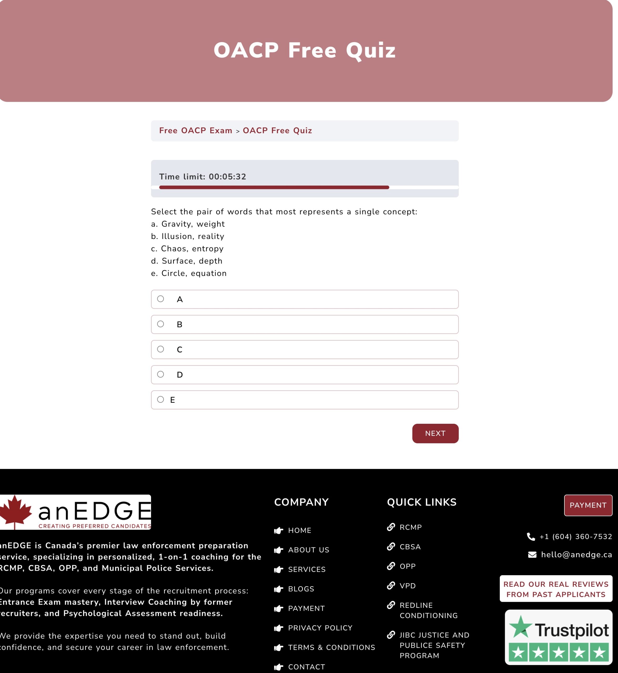 The OACP exam is the standardized testing requirement for police applicants in Ontario. It evaluates cognitive skills, written communication, judgment, and behavioral traits to determine readiness for police work.